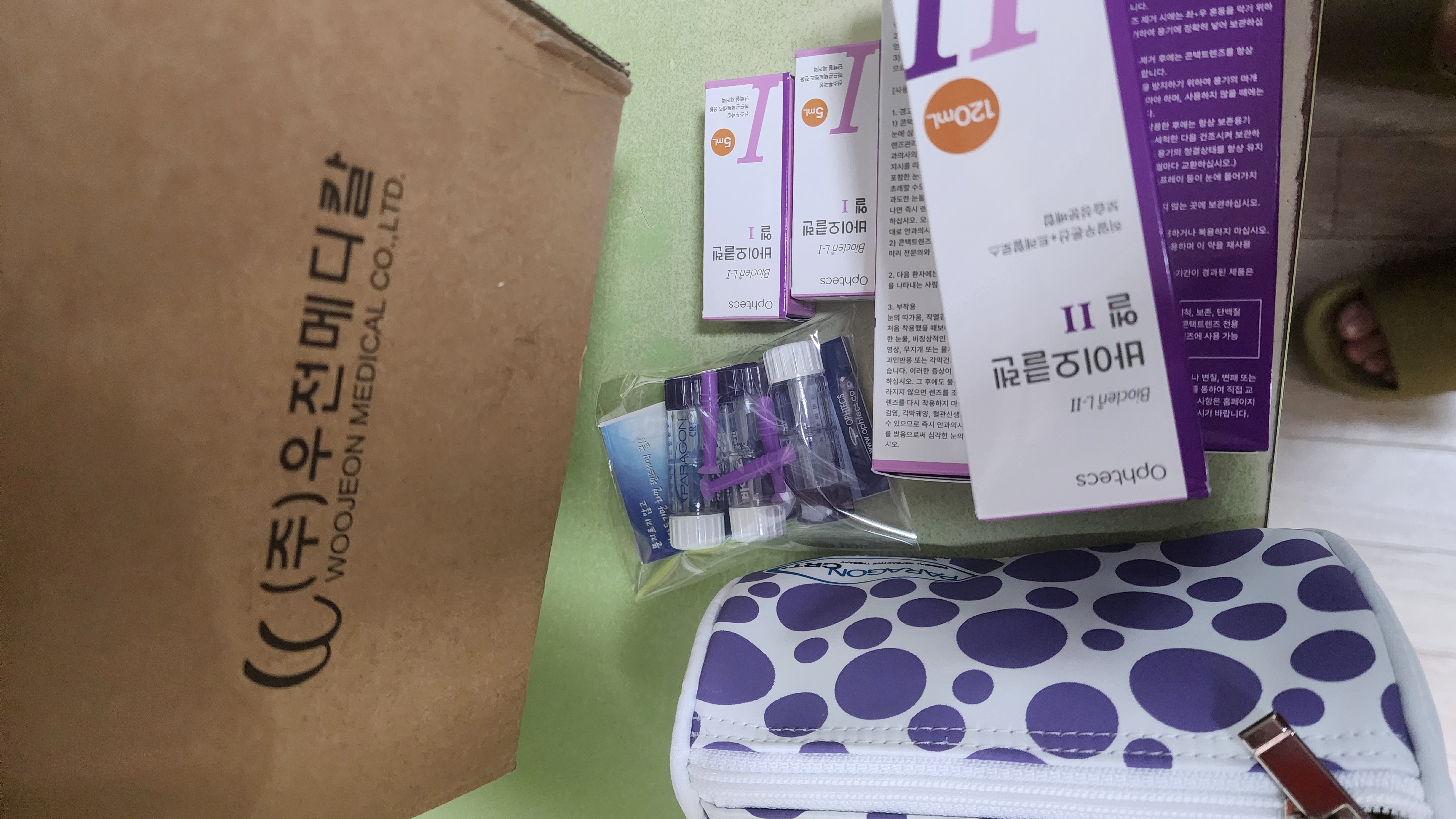 바이오클렌엘 원, 엘 투는 정기적으로 구매하고 있는 제품입니다. 이번에는 포장이 보라색으로 리메뉴얼 되었네요^^ 아침 저녁으로 간편하게 렌즈를 관리할 수 있어서 매우 만족하는 제품입니다. 파라곤 CRT 드림렌즈 시작하면서 다른 제품은 사용해 본적없구요 늘 바이오클렌만 사용합니다^^ 만족하다보니 굳이 다른 제품을 이용해 볼 생각을 하지 않는 거 같아요. 배송도 늘 안전하고 신속하게 해 주셔서 감사해요.